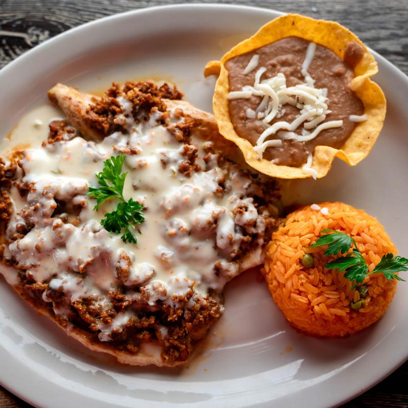 enchilada ,Chile poblano and rice