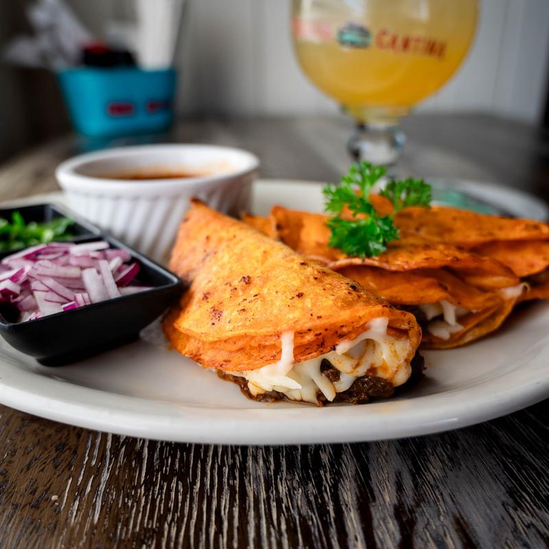 Melted cheese, guajillo braised beef, onion, cilantro, and habanero sauce.